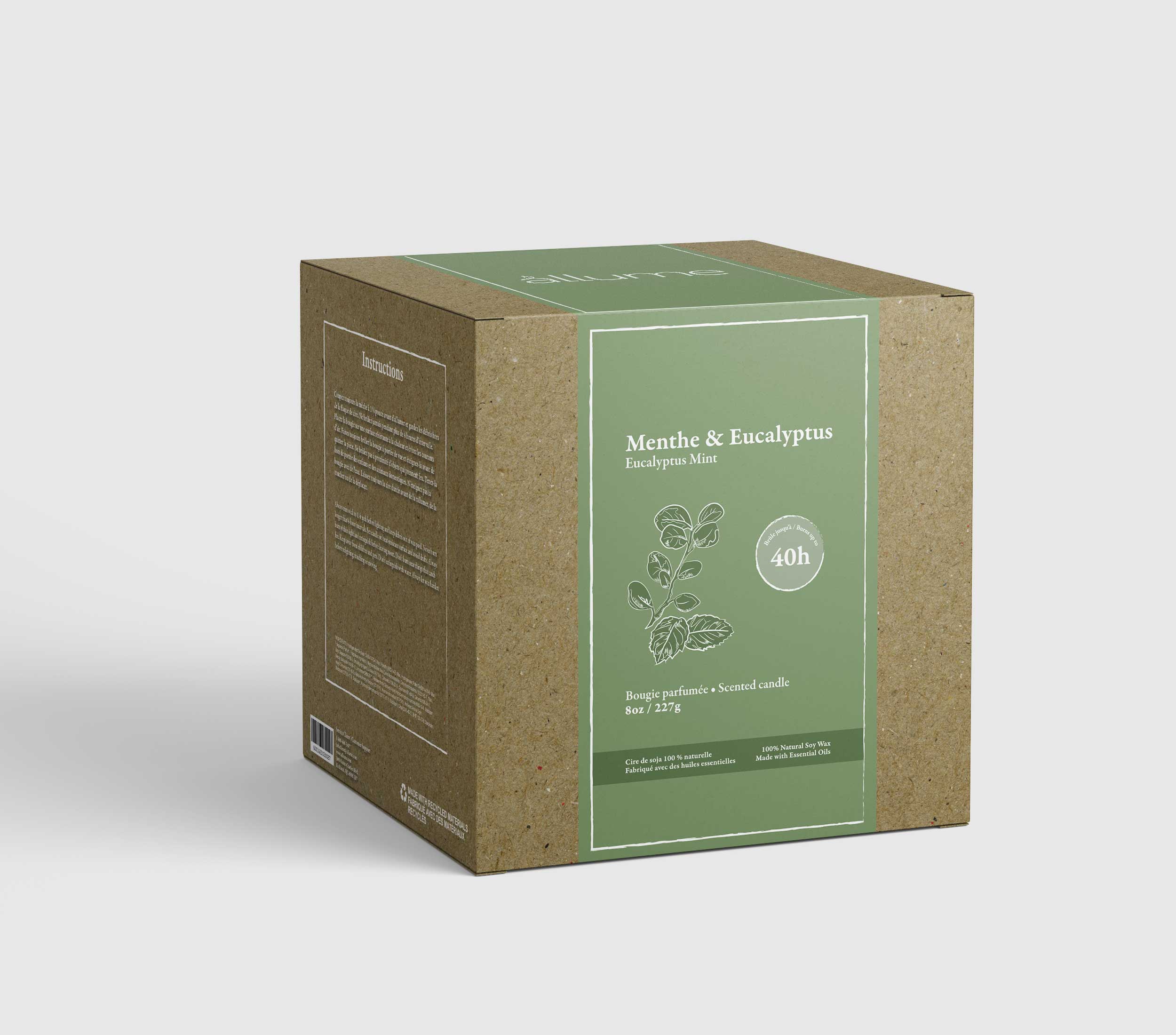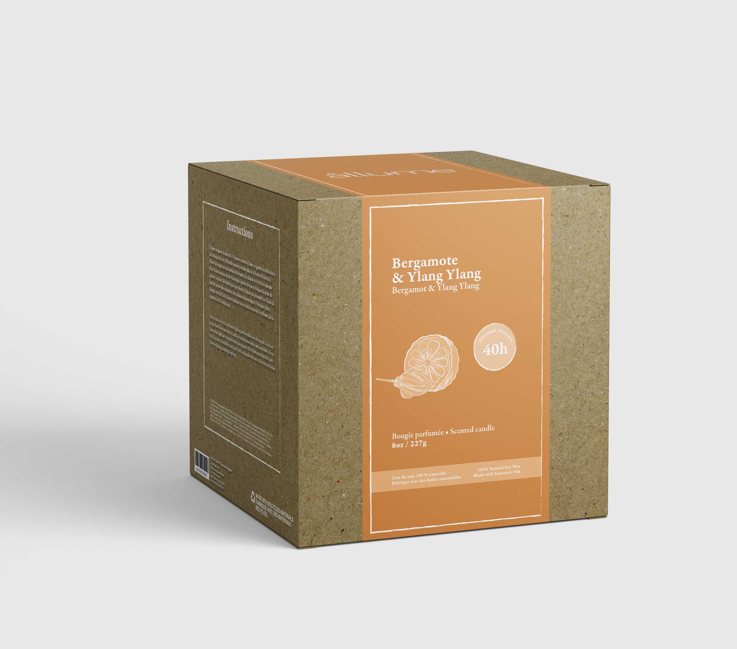 For our packaging course, we were tasked with recreating a previous project in an eco-friendly manner. Since our Allume candles’ packaging consisted solely of labels on glass jars, I wanted to design a box that would protect them from damage while maintaining our brand’s eco-friendliness. I wanted the boxes to look consistent with our candle labels, so I reused the illustrations and typography. I adjusted some of our brand colours so that our logo could be white on each box, since previously the contrast would have made it illegible.